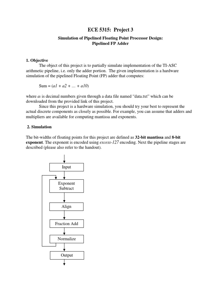 exponent. The exponent is encoded using excess-127 encoding. Next the pipeline stages are