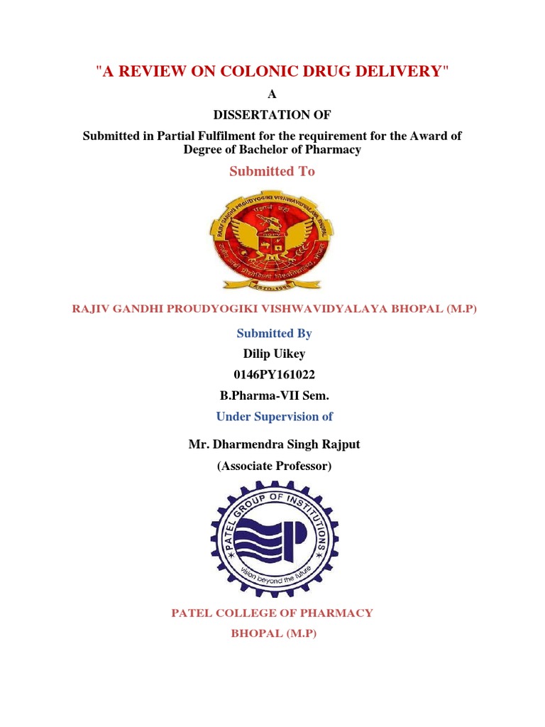 the work presented in the project entitled “A REVIEW ON COLONIC DRUG
