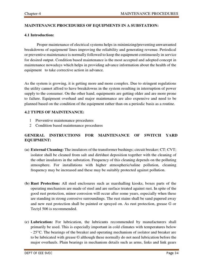 equipments. Cleaning of porcelain insulators is necessary for uniform voltage distribution.