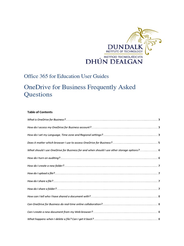 How do I access my OneDrive for Business account?.......................................................................................... 3