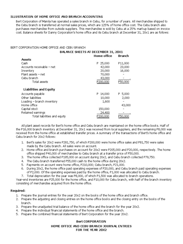 1. Bert’s sales for 20x2 were P281,750, of which P200,000 were home office sales and P81,750 were sales