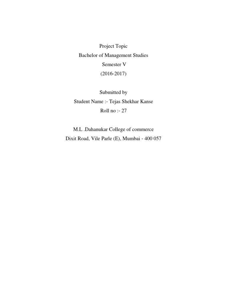 This is to certify that Mr.TEJAS SHEKHAR KANSE, Roll no: 27 of Third Year B.M.S.,