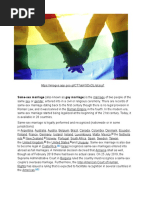 Same-sex marriage, the practice of marriage between two men or between two women.