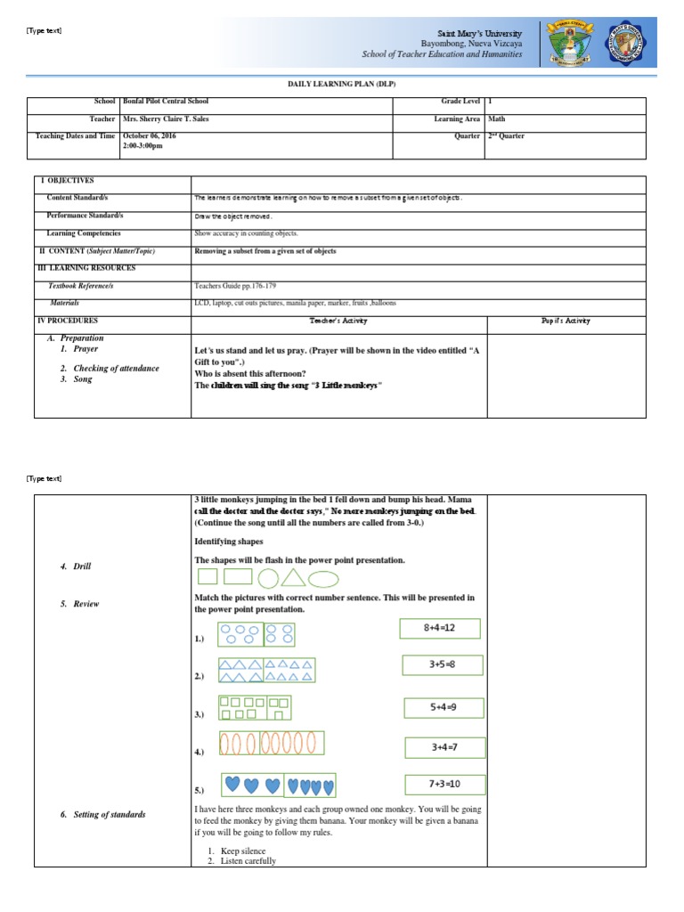 Teacher Mrs. Sherry Claire T. Sales Learning Area Math