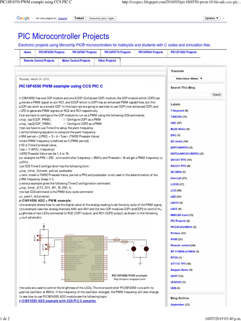 PIC18F4550 PWM example using CCS PIC C http://ccspicc.blogspot.com/2016/03/pic18f4550-pwm-10-bit-adc-ccs-pic...