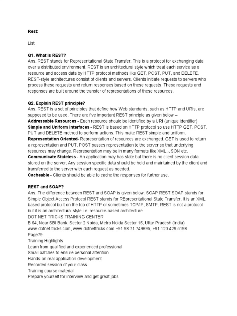 headers, caching, versioning, various content formats)