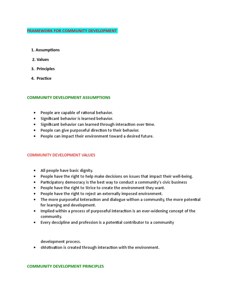 FRAMEWORK FOR COMMUNITY DEVELOPMENT