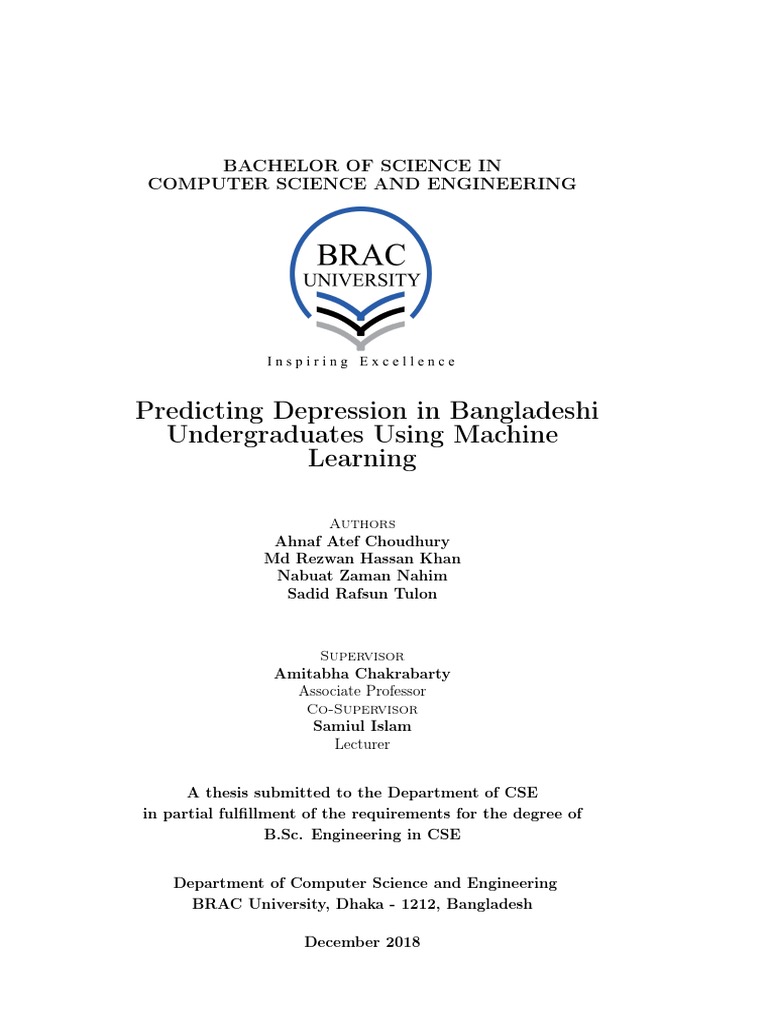 The thesis titled "Predicting Depression in Bangladeshi Undergraduates