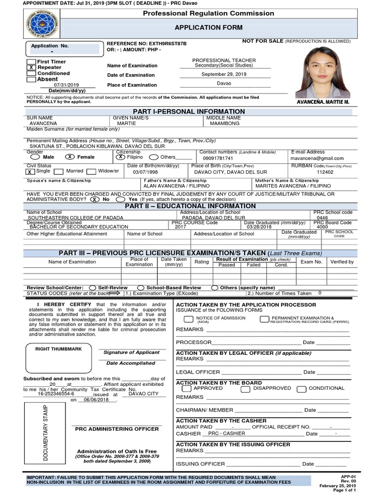 APPOINTMENT DATE: Jul 31, 2019 (3PM SLOT ( DEADLINE )) - PRC Davao