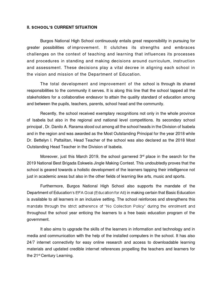 Hence, the School Improvement Plan of Burgos National High School, Burgos, Isabela