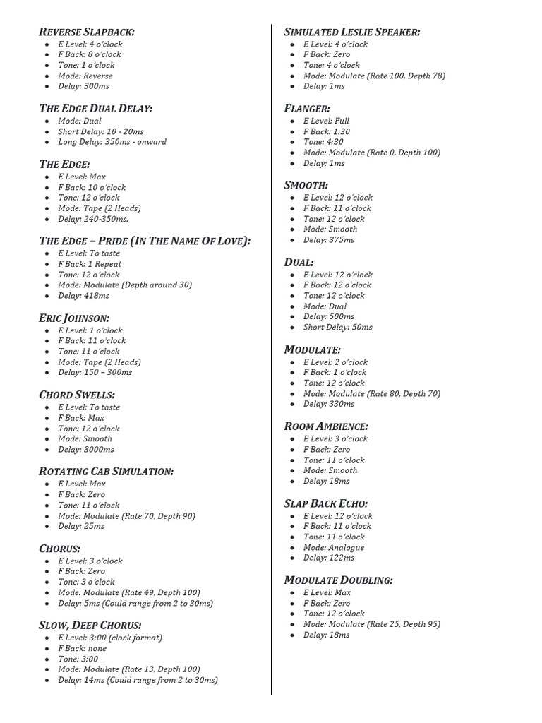 • Tone: 11 o'clock SLAP BACK ECHO: