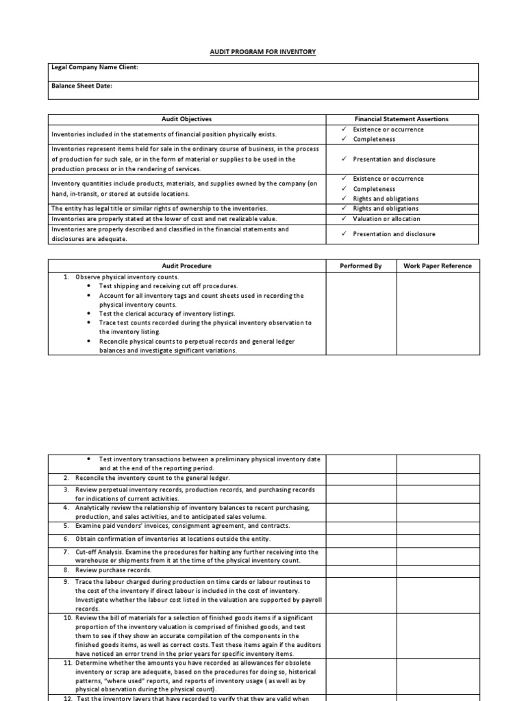 AUDIT PROGRAM FOR INVENTORY