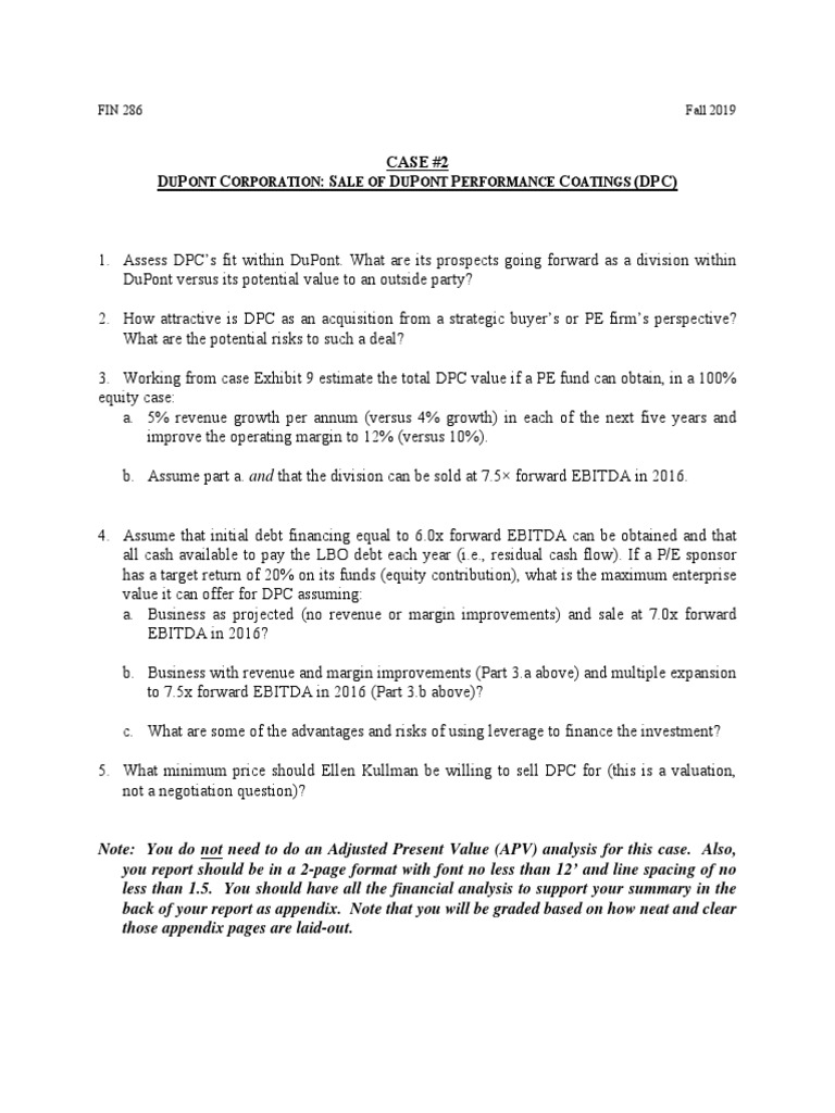 5. What minimum price should Ellen Kullman be willing to sell DPC for (this is a valuation,