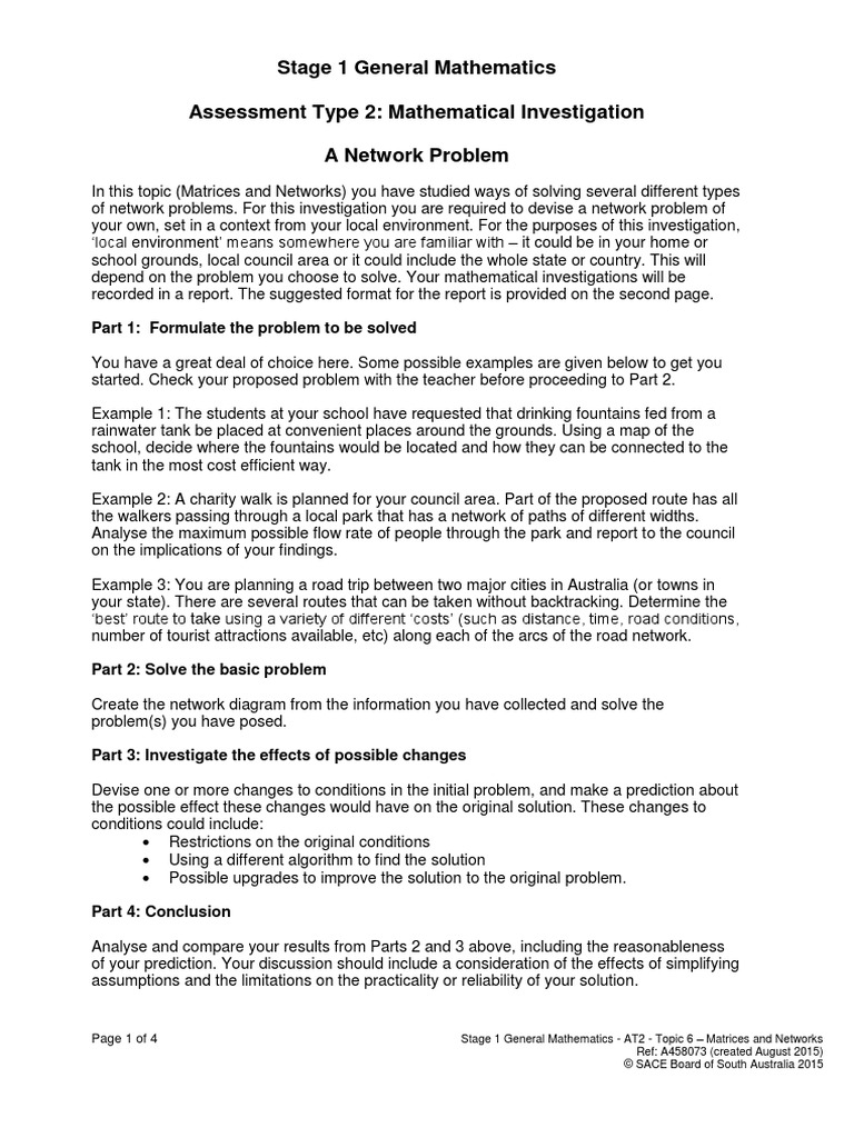 Page 4 of 4 Stage 1 General Mathematics - AT2 - Topic 6 – Matrices and Networks