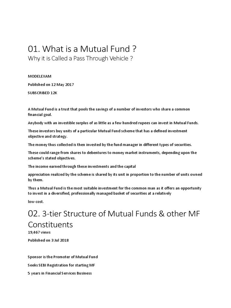 A Mutual Fund is a trust that pools the savings of a number of investors who share a common