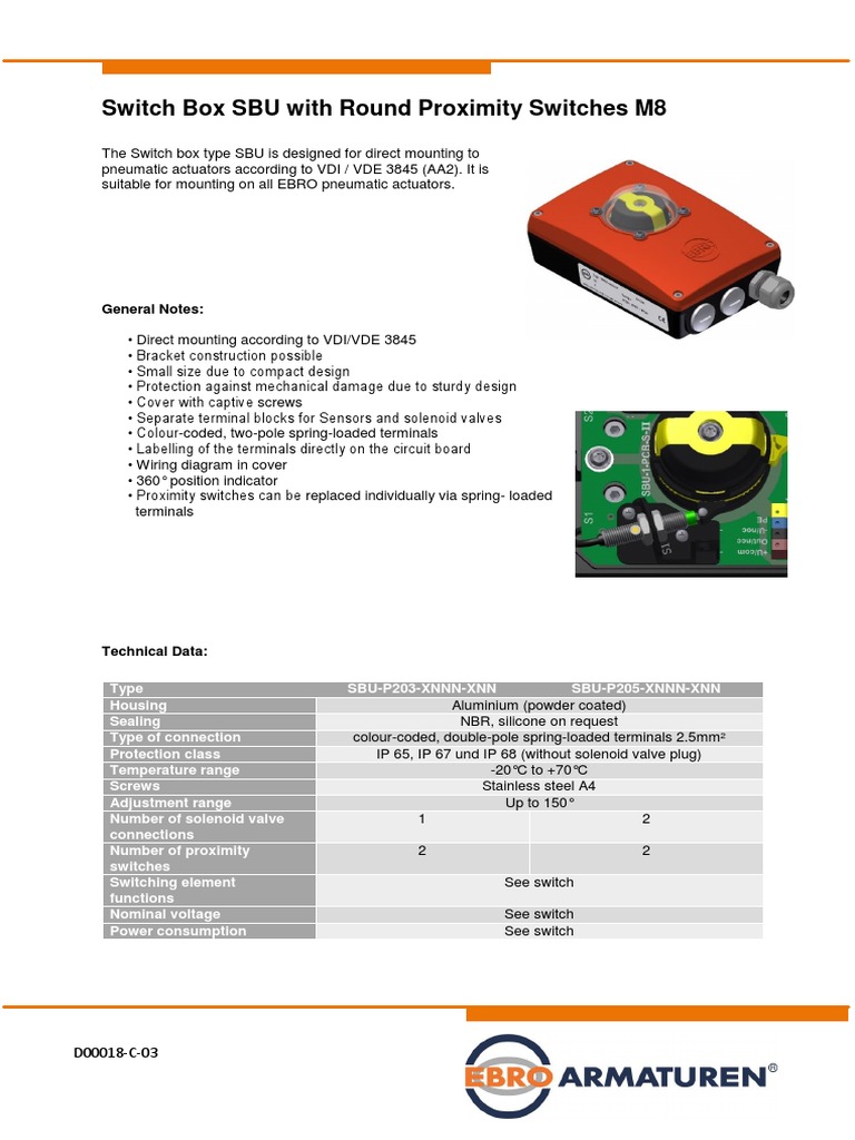 Type SBU-P203-XNNN-XNN SBU-P205-XNNN-XNN
