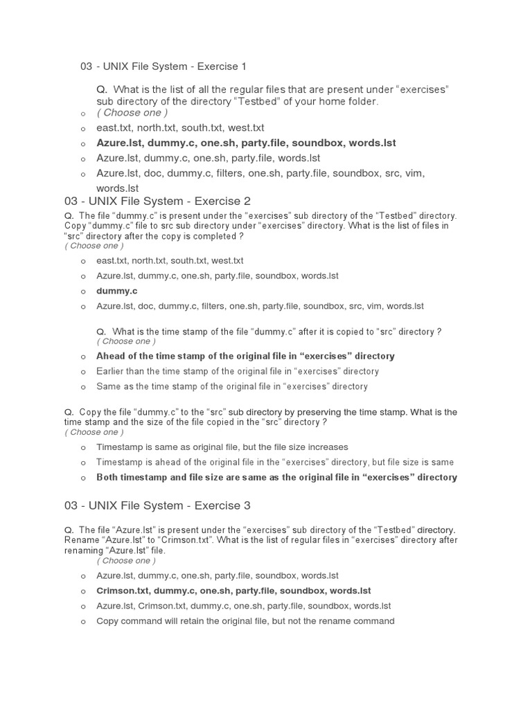 Q. The file “dummy.c” is present under the “exercises” sub directory of the “Testbed” directory.