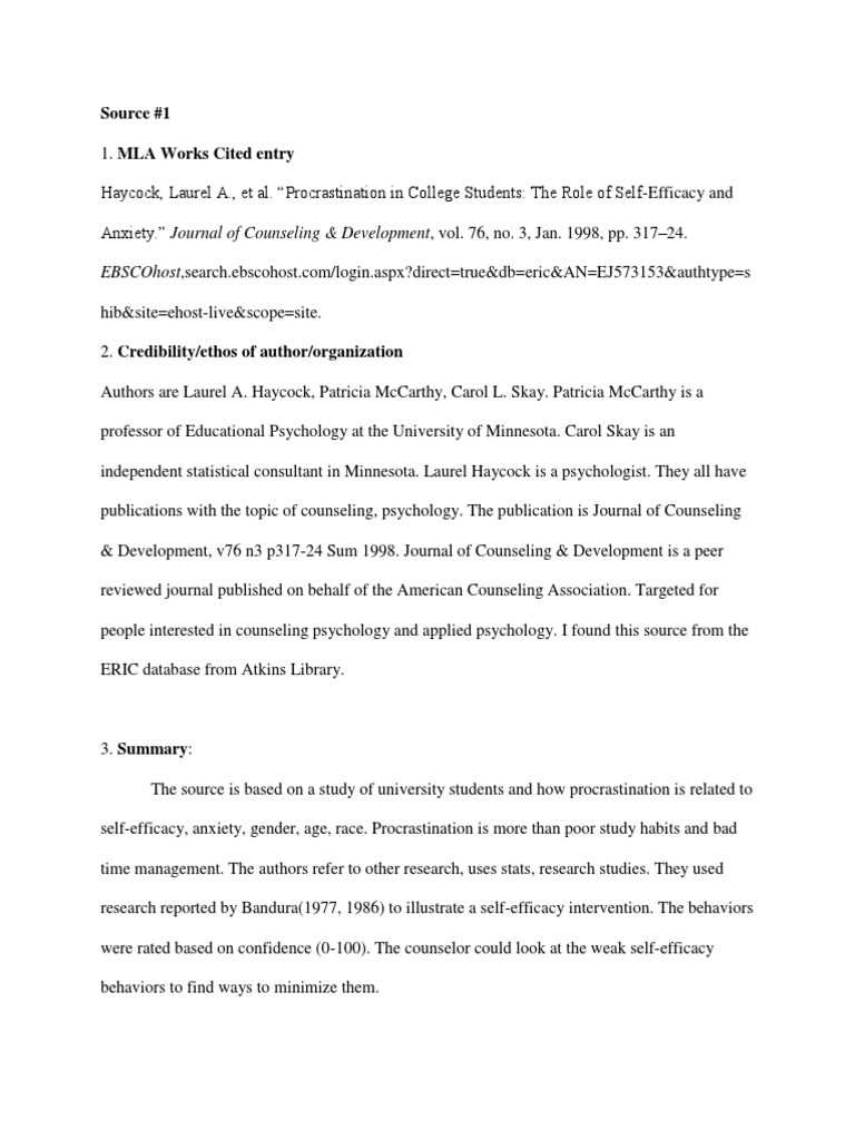Haycock, Laurel A., et al. “Procrastination in College Students: The Role of Self-Efficacy and