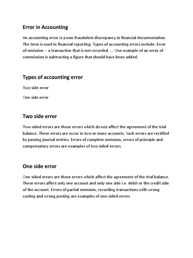 One-sided errors are those errors which affect the agreement of the trial balance.