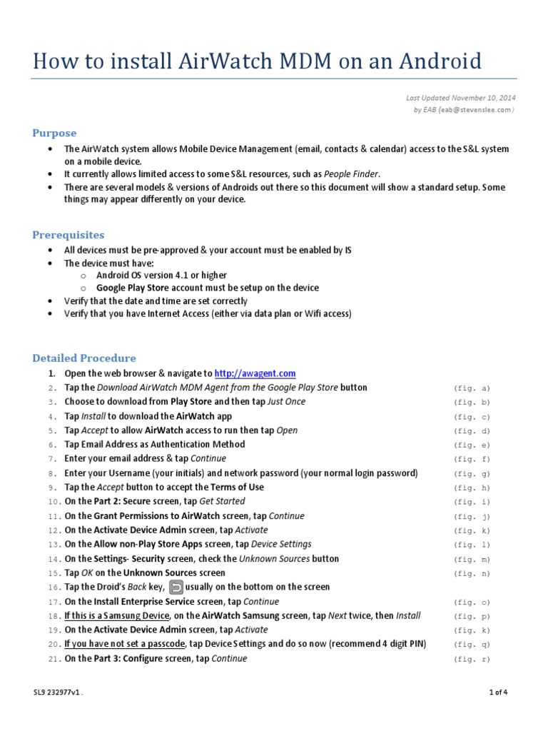 2. Tap the Download AirWatch MDM Agent from the Google Play Store button (fig. a)