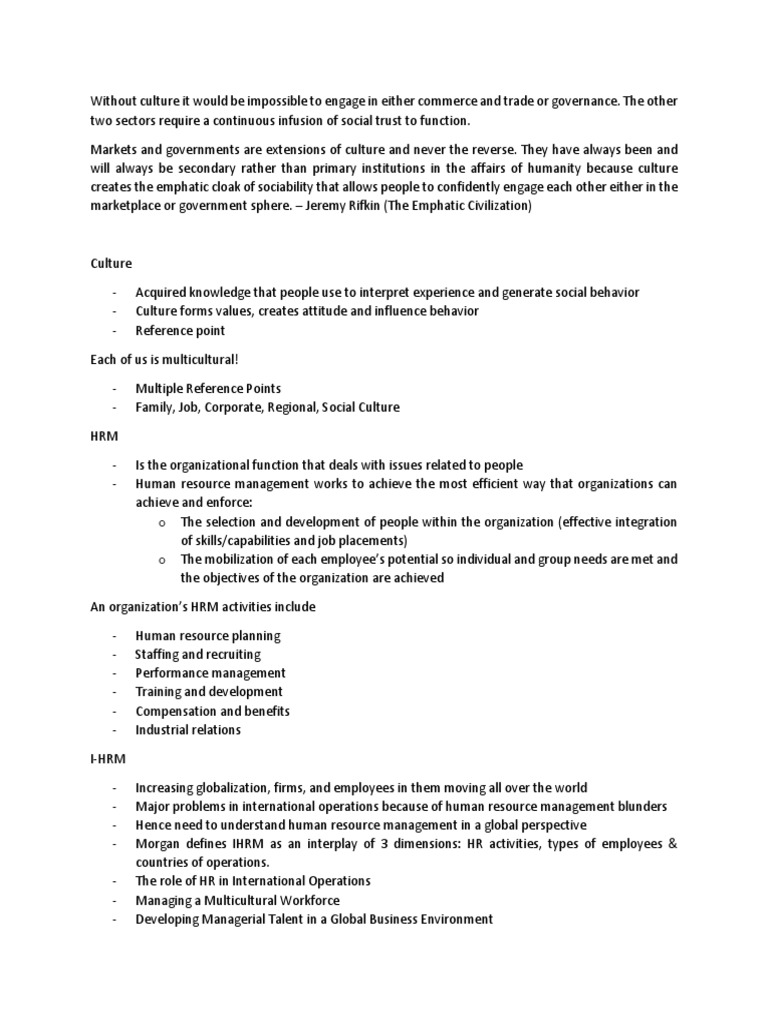 Without culture it would be impossible to engage in either commerce and trade or governance.