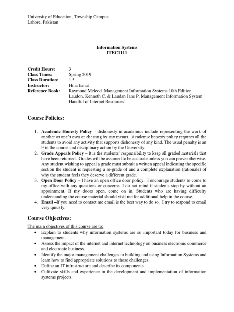 Reference Book: Raymond Mcleod. Management Information Systems 10th Edition