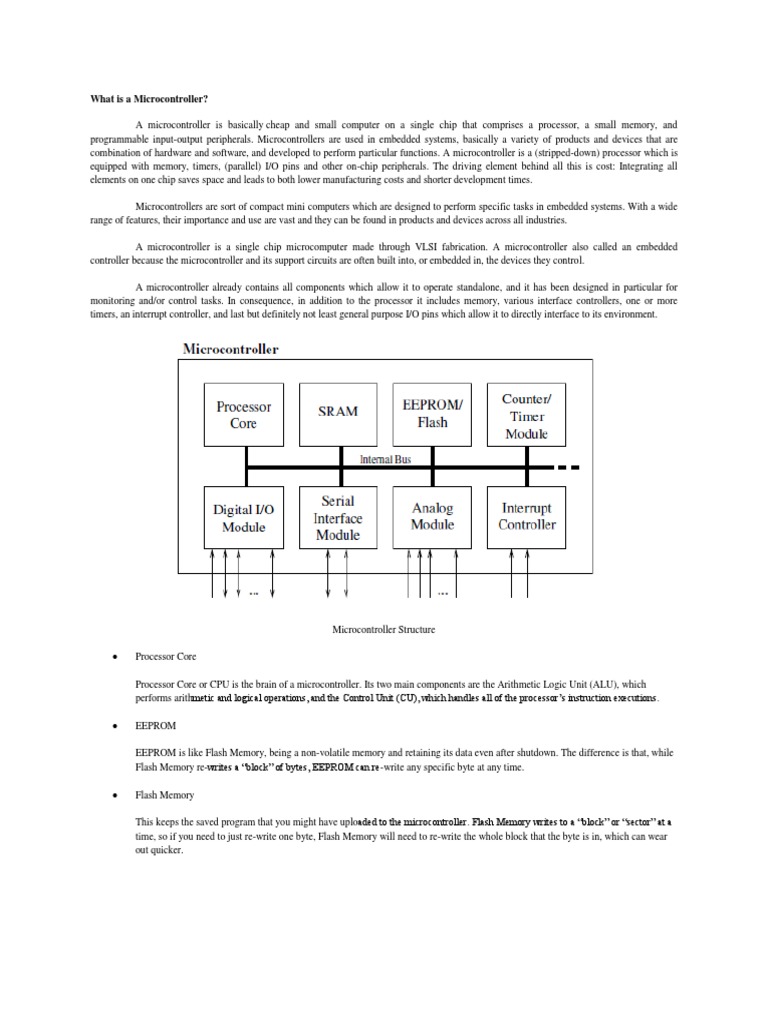 combination of hardware and software, and developed to perform particular functions. A microcontroller is a (stripped-down) processor which is