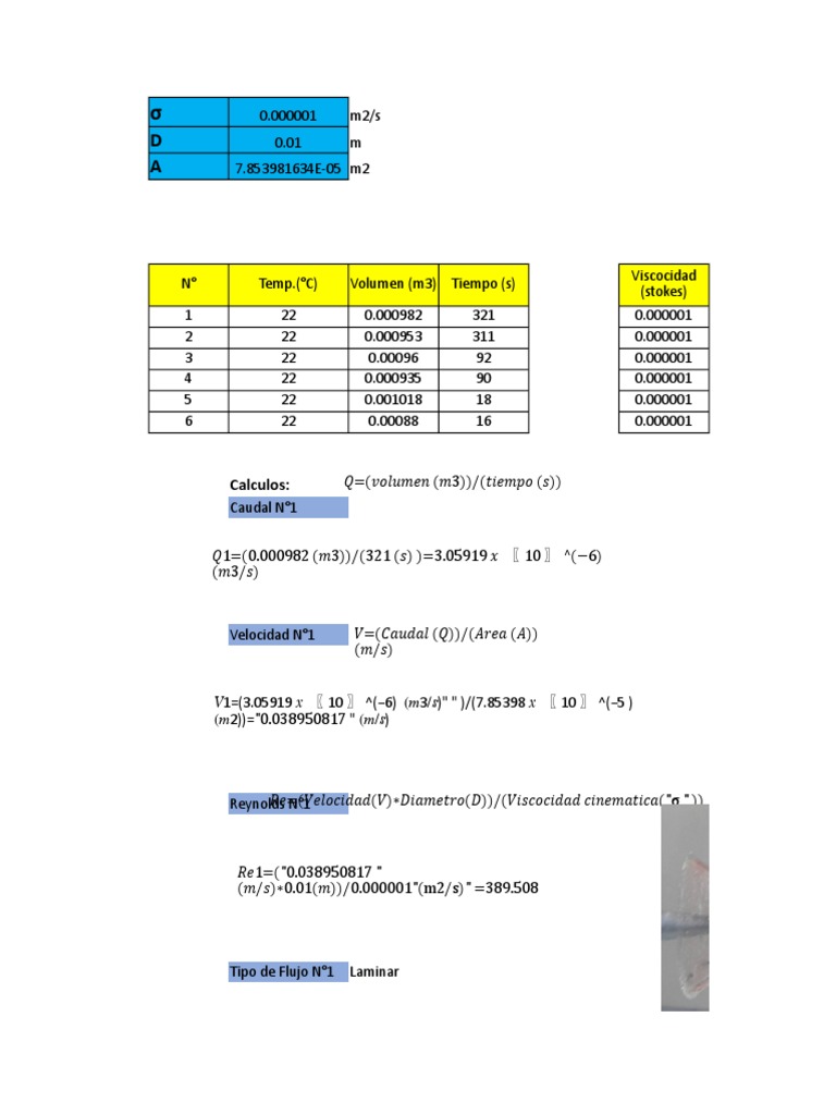 Velocidad N°1 �=(𝐶𝑎𝑢𝑑𝑎𝑙 (�))/(𝐴𝑟𝑒𝑎 (𝐴))