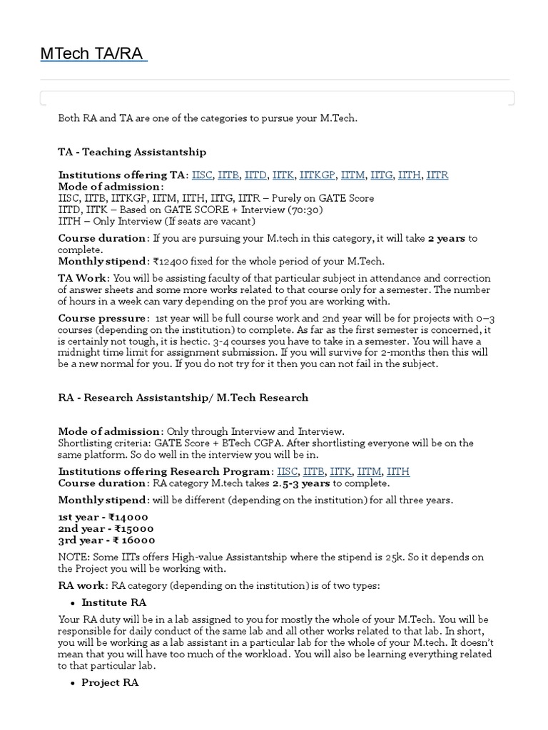 Institutions offering TA: IISC, IITB, IITD, IITK, IITKGP, IITM, IITG, IITH, IITR