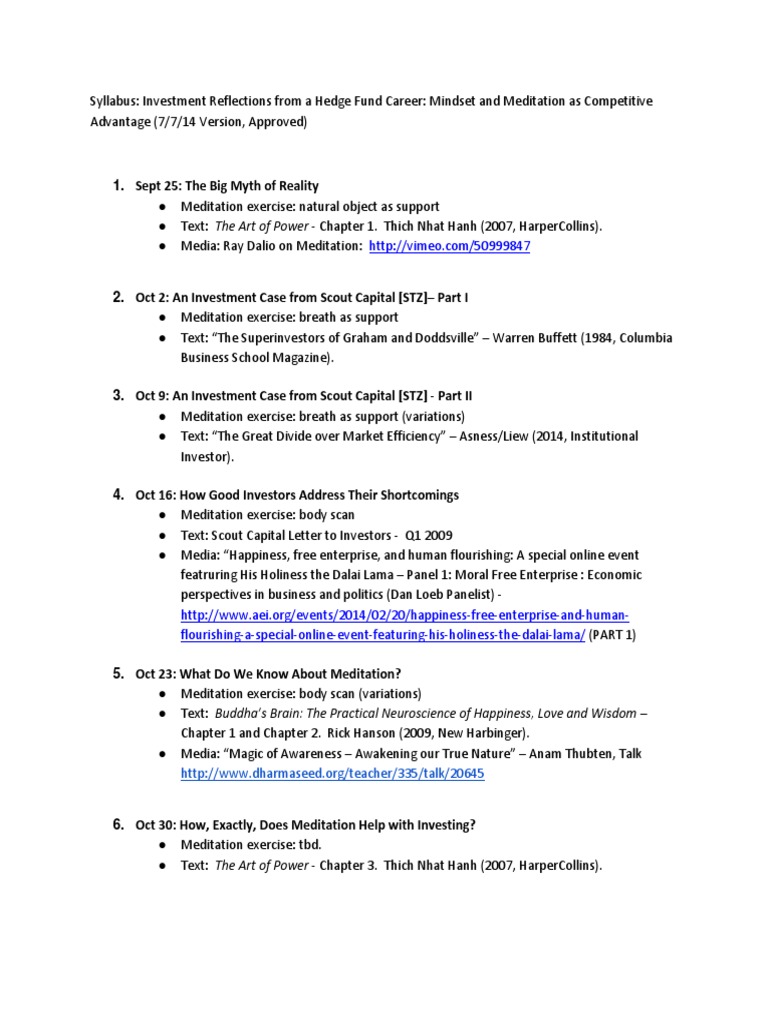 Syllabus: Investment Reflections from a Hedge Fund Career: Mindset and Meditation as Competitive