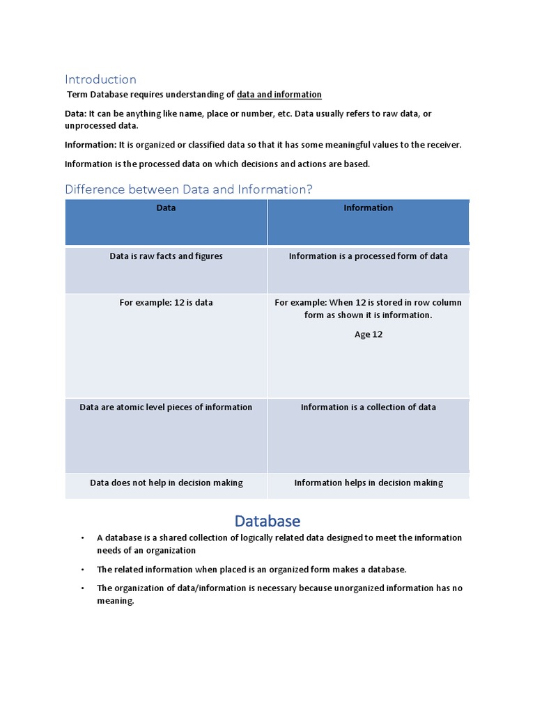 Data: It can be anything like name, place or number, etc. Data usually refers to raw data, or