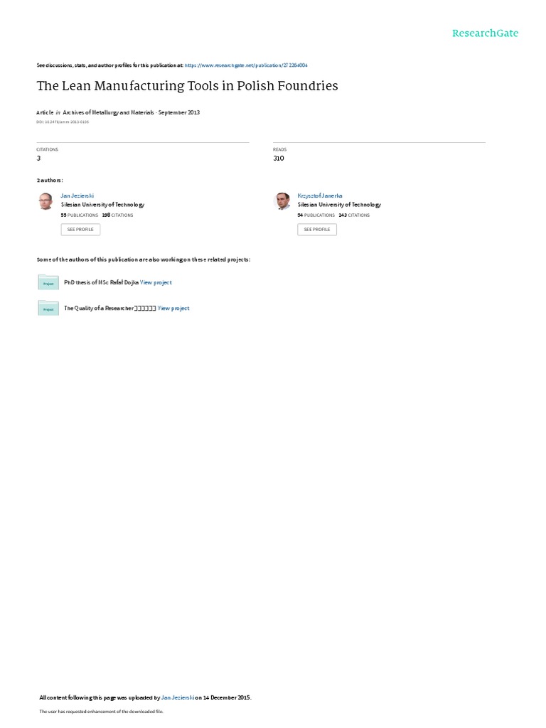 in the Polish foundry industry. The survey was carried out and [5] J. J e z i e r s k i, K. J a n e r k a, The 5S system in small cast