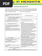 Summary of the Class Observation by ICL Teachers