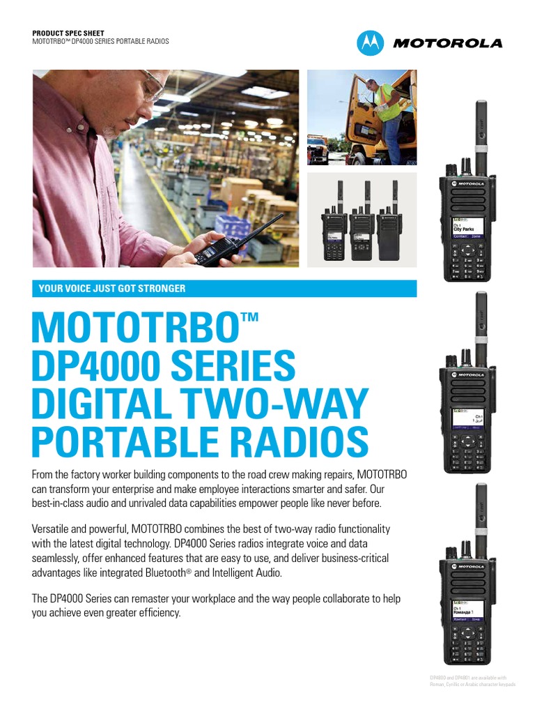 and clearer voice communications. When it comes to DP4000 Series radios meet the most demanding specs, landline or mobile