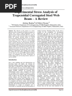 63e Moment and axial load will be carried by flanges and shear will be carried by the web For plastic (1) and compact (2) sections Me= pySt < kpyZp 5;= plastic modulus of flanges only, ignoring web Z;=elastic modulus of flanges only, ignoring web j-— Moment due to factored ultimate load ~ moment due to unfactored service load For semi-compact (3) sections Me = pyZs For slender (4) sections M, = RpyZie ot pyZn (Whichever is the lower) The reduction factor R may be obtained from Table 8 of BS 5950: Part | Z c= clastic section modulus of the compression flange, when flanges only are considered, ignoring web Zp= elastic section modulus of the tension flange, when flanges only are considered, ignoring web Member moment capacity (lateral torsional buckling) Destabilising load is one which is applied to the top flange of a beam at a point which is not laterally braced or restrained, and the load and the flange are both free to deflect laterally because the top flange is not laterally and rotationally restrained. Lateral restraint of the com- pression flange of a beam becomes effective only when the restraint is connected to an appropriate bracing system which transfers the load to the support of the structure.Design of Beams 241 Torsional resiraint effectively holds the flanges of the beam in posi- tion relative to each other. Determination of effective lengths (1) For beams with no lateral restraint in span the effective length Ly. will be as shown in Table 7.2. Table 7.2 Effective length Ly of beam. Condition at support Loading condition Normal _Destabilising Case 1 Compression flange laterally restrained O.7L 0.85L Full torsional restraint Both flanges restrained to rotate on plan Case 2 Compression flange laterally restrained O.85L 1.0L Full torsional restraint Both flanges partially restrained to rotate on plan Case 3. Compression flange laterally restrained 1.0L 1.2L Full torsional restraint Both flanges free to rotate on plan Case 4 Compression flange laterally unrestrained 10L+2D 1.2L+2D No torsional restraint Both flanges free to rotate on plan Bottom flange only fixed to support CaseS Compression flange laterally unrestrained 12L+2D 14L+2D No torsional restraint Both flanges free to rotate on plan Bottom flange simply resting on support Dis the depth of beam; L is as illustrated in SK 7/6. Note: (2) For beams with intermediate lateral restraint in the span, the effective length Lp will be 1.0L for normal loads and 1.2L for destabilising loads, where L is the distance between the lateral restraints. (3) For a section of beam between a lateral restraint and a support, use mean value of Le as obtained from point (1) for condition at support and from (2) for intermediate lateral restraint. (4) For effective lengths of cantilever beams use SK 7/7. When torsional restraint is provided by torsional stiffener see Step 18 for the design of torsional stiffeners. Determine \ = slenderness ratio = Le/ry Determine \/x and N (obtain x and N from Step 5) Determine v=slenderness factor from Table 14 of BS 5950: Part 1 or, alternatively: 1pry 4 4 v= [(sva -+35(2) +¥) +44 where = 0.8(2N — 1) for N> 0.5 and p= 1.0(2N 1) for N<0.5242 Structural Steelwork “7 yySuaq pauyesysasun pu yroddns ye weaq Jo uompucy 9/2 ¥S 9 asv9 z 2509 5319 ‘spua sayy pue syioddns ye SuoRpuod uo paseq swieaq sOAaIQUED Jo SHBUD] ANAT L/L MS SS gusmuysos measy0) yen snamus7u0y anvoreisry arrenorsaas axy |) raiser oe) CONT a == = [eis [ewsrneensg roan] GENIVEISTH > anmota oa || CE 7 eee » Lh sane ma Gantvassay aTIvagavT (ONG JY FONVIE OL als || Se > snomspeg sz | ez [E duscsngoysag rosy] ana aaa ve = Tal ml ssaneondDesign of Beams 243 (pruos) L/L HS (piuos) L/L MS aanireasae caseirassee ATIVNOISHOL CAV ATtVNoIstos ONY AITASIVT ONT ‘ATIPAGLYT ONT aw [le [FE 7 [90 |y | osoneonad masoy auxiveisee asgrnassre ATIVNOISHOL ONE ATVNOIStOL ONT ro TE t st] 80 |e v0 | 90 |e [Gurssn gee rewsey) I Pesrneorag| remuoy our asuivaisae srrvasuv1 e poreueat amrmussee arrraaivt (ONE JY SONIA OL _ muna. in ONE AV SONVIE dO L-~ Menenusiu) c 7 aa = 7 [sz [eo [F nm [#0 [e [owsenaen rows fssneeri] my Fas ounisiot ang ama 3 juraujsas ang anata mayo) Yn ; + J“ syousruay i z x lop f = rm | eo [E | i) LL ° tw) ee ae Lt fessneerog| ray244 Structural Steelwork If there is no load in the span or in the unrestrained length of the beam, then the equivalent moment factor m obtained from Tables 13 and 18 of BS 5950: Part | converts the end moments of the length of the beam under consideration into a uniform equivalent moment. Similarly, if there is applied load on the beam between restraints, then a slenderness factor n is used, which is obtained from Tables 15 and 16 of BS 5950: Part 1. Find the equivalent uniform moment factor m from Tables 13 and 18 of BS 5950: Part 1 or, alternatively, use: m = 0.57 + 0.338 + 0.108? > 0.43 for beams of uniform section with equal flanges m = 1.0 for all other sections where fis the ratio of the smaller end moment to the larger end moment on a span equal to the unrestrained length. When m is determined from Table 18 of BS 5950: Part 1, then n is taken as equal to 1.0. Similarly, when n is determined from Tables 15 and 16 of BS 5950: Part 1, then m is taken as equal to 1.0. Mo= bending moment at mid-length on a simply supported span equal to the unrestrained length = M/Mo (hogging moments are positive and sagging moments are negative) M=numerically larger end moment of the beam in the unrestrained length ‘woccING MoWENTS +¥E a iil 7 4 lion, | Au (4 rm fil LUT voy > py “ELA 5) UNRESTRAINED LENGTH OF BEAM UNRESTRAINED LENGTH OF BEAM, @ 46) @ -¥E) P 1, fe =, * (-¥8) (7) | uz 1p UNRESTRAINED LENGTH 1 T= = -V8 te tp jo fm mM +¥8) jeval ON oti it |e 2 1, 1 Le. y= M= HVE y= = +E Me Mo SK 7/8 Sign convention of 3 and +.Design of Beams 245 ‘© For members subject to destabilising forces m and n are always taken equal to 1.0 For members with unequal flanges the factors m and n are taken equal to 1.0 © For cantilevers