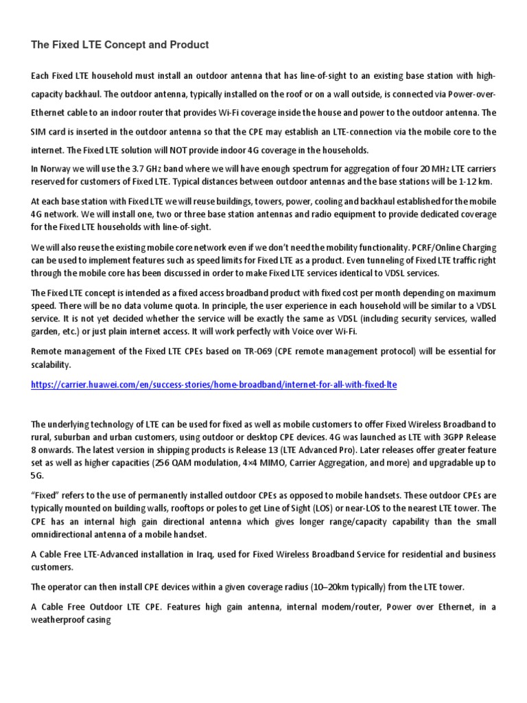 reserved for customers of Fixed LTE. Typical distances between outdoor antennas and the base stations will be 1-12 km.
