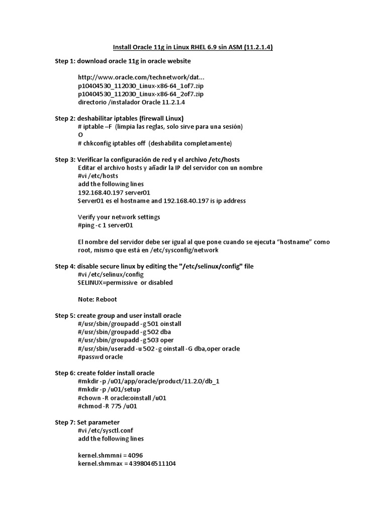 Install Oracle 11g in Linux RHEL 6.9 sin ASM (11.2.1.