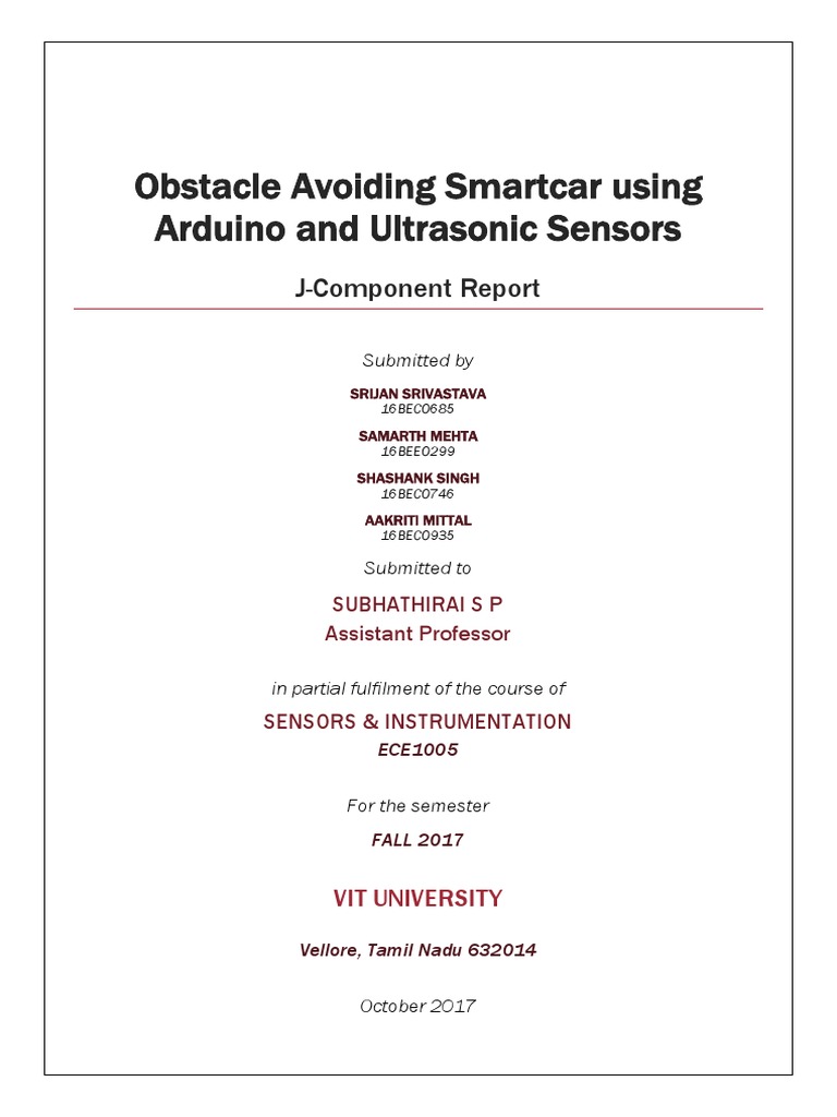 Obstacle Avoiding Smartcar using Arduino and Ultrasonic Sensors ..........................1