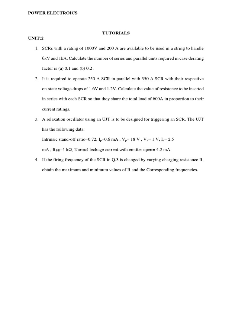 1. SCRs with a rating of 1000V and 200 A are available to be used in a string to handle