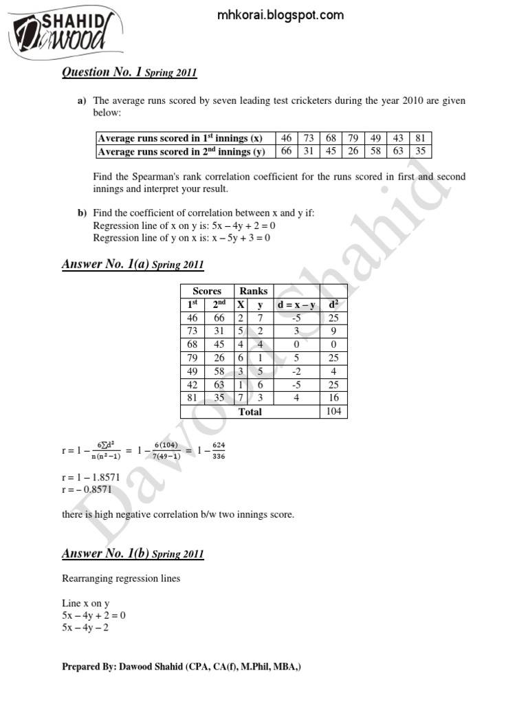 a) Following data shows the marks obtained by 11 students in Mathematics and Physics:
