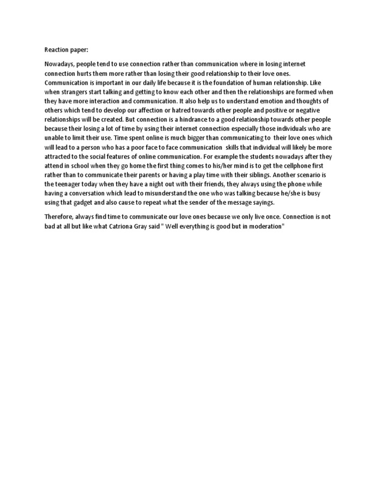 Nowadays, people tend to use connection rather than communication where in losing internet