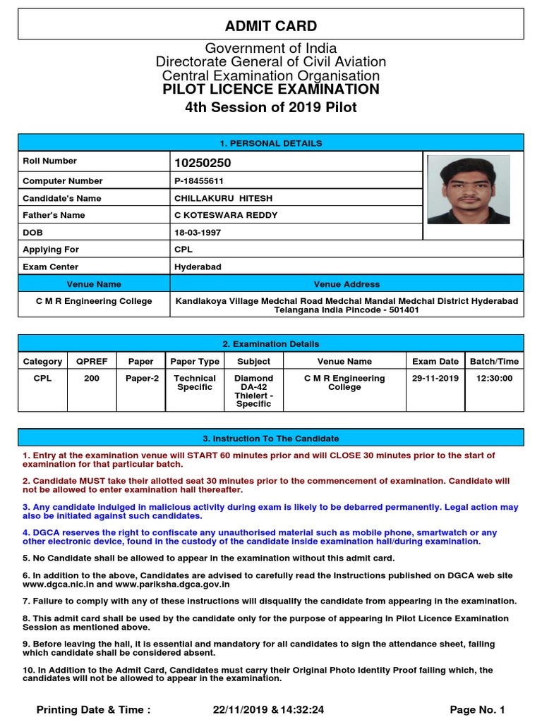 8. This admit card shall be used by the candidate only for the purpose of appearing In Pilot Licence Examination