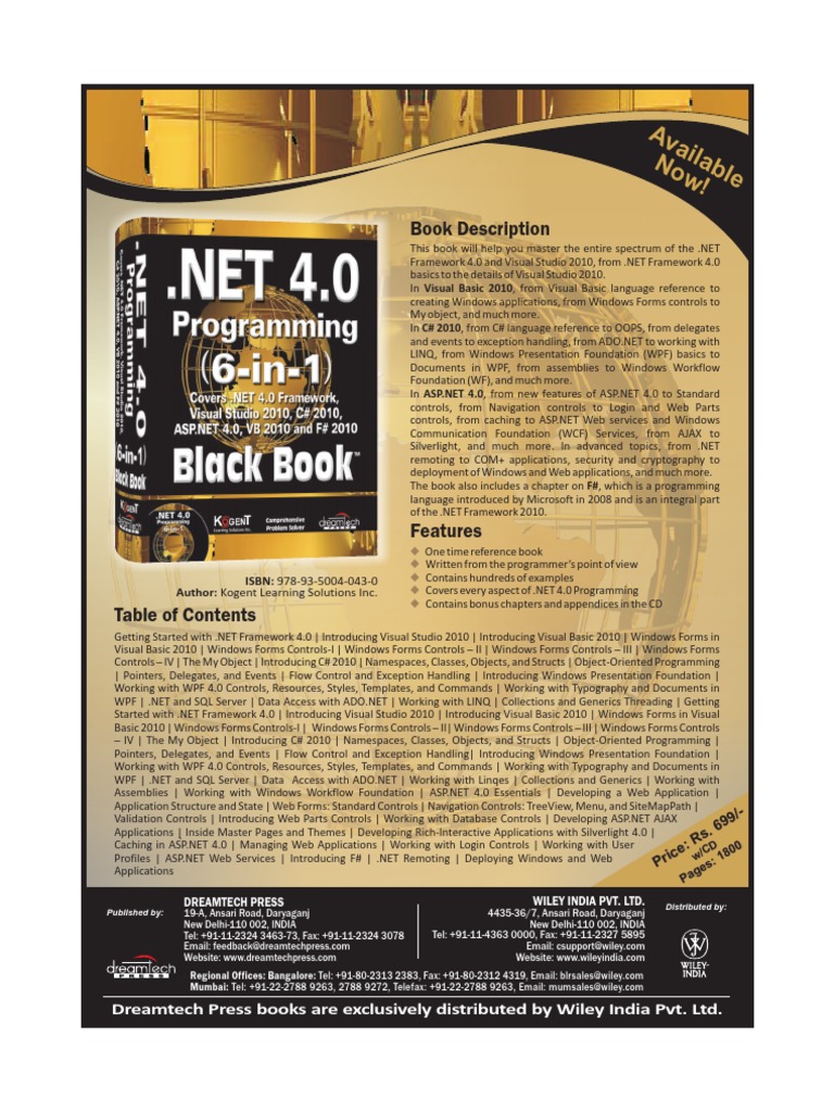 Author: Kogent Learning Solutions Inc. u Covers every aspect of .NET 4.0 Programming