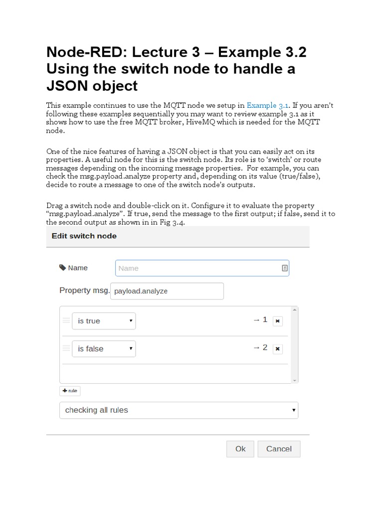 to setup the MQTT node used in this example. Example 3.2 explains the switch node
