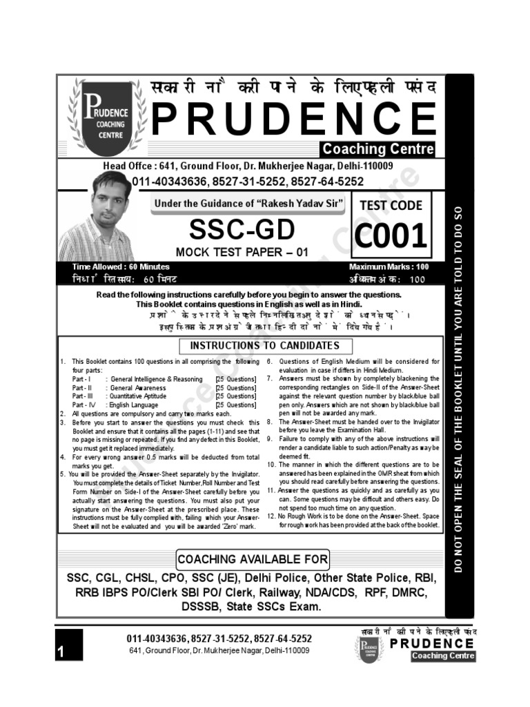 This Booklet contains questions in English as well as in Hindi.