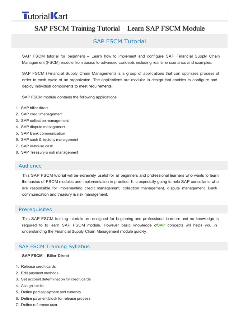required to to learn SAP FSCM module. However basic knowledge ofSAP concepts will helps you in