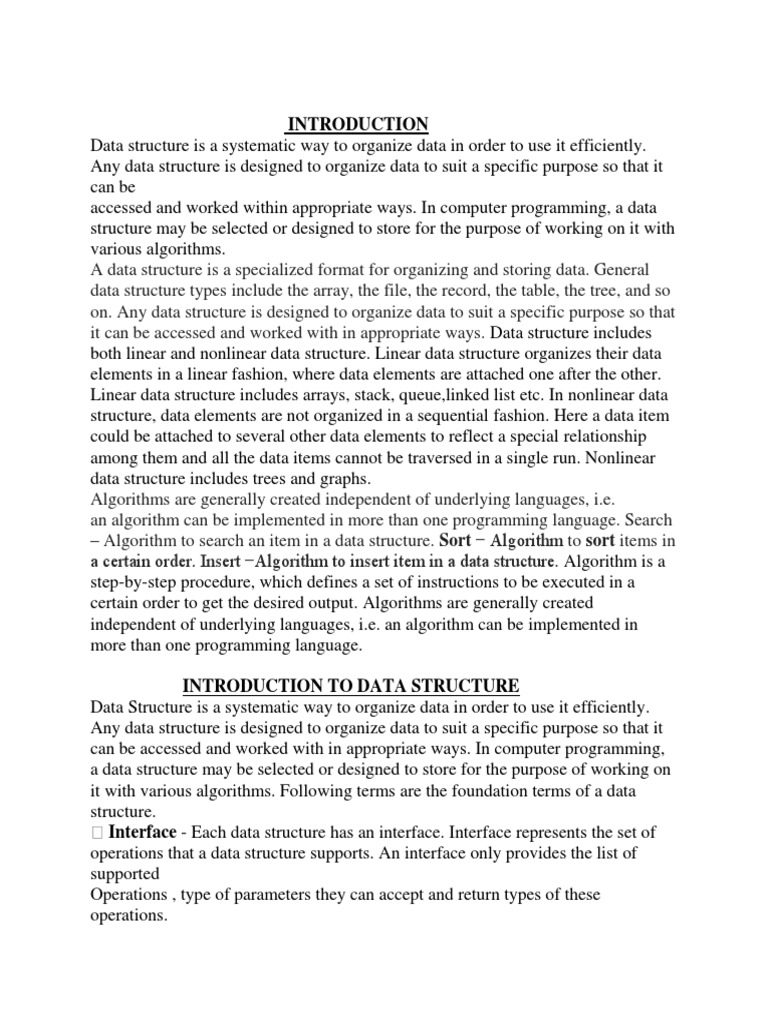 it can be accessed and worked with in appropriate ways. Data structure includes