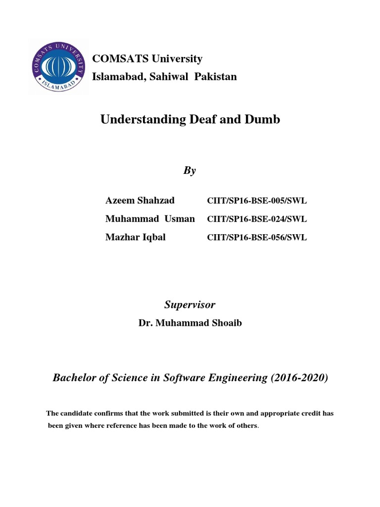 Secondary School of Special Education Hearing Impaired Sahiwal and test it on deaf and dumb student .