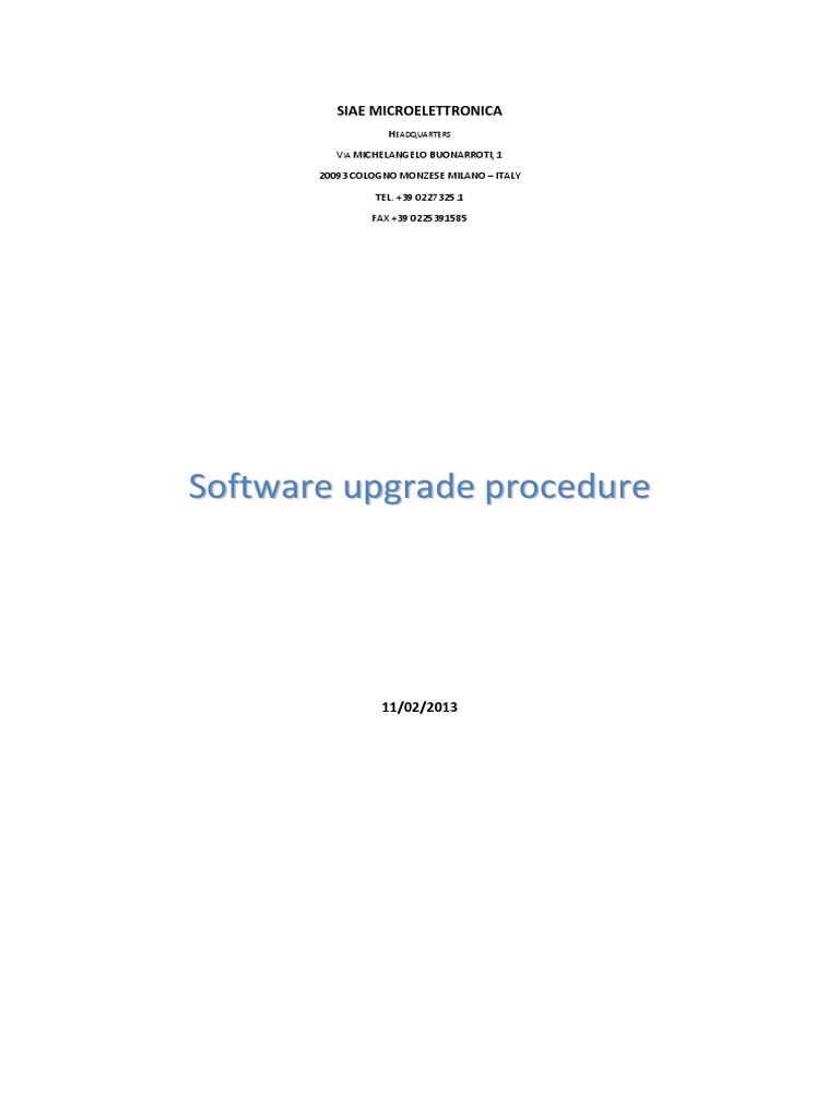 SIAE MICROELETTRONICA Proprietary and Confidential. All rights reserved. The copyright of this document is the