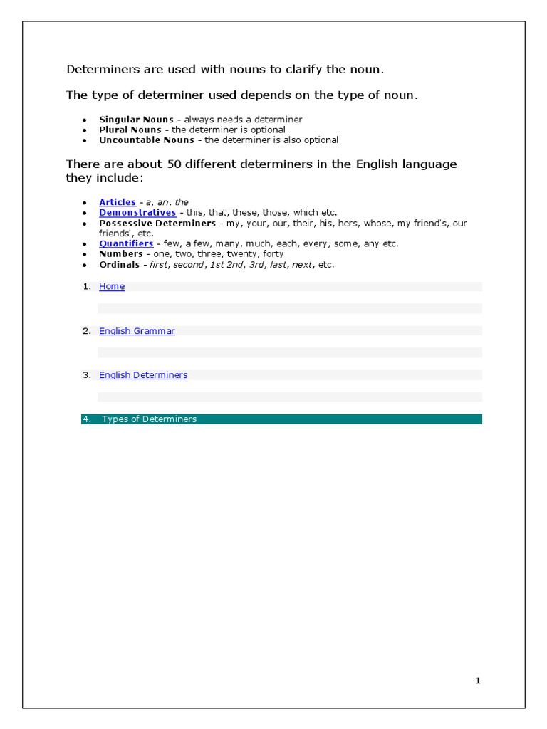 4. Types of Determiners